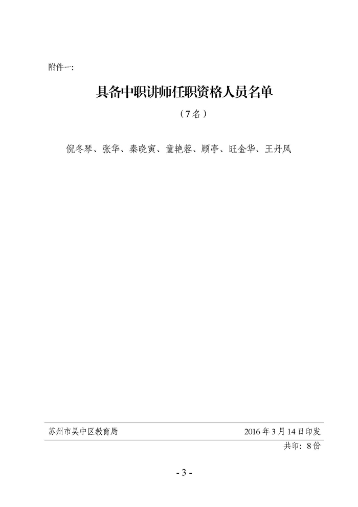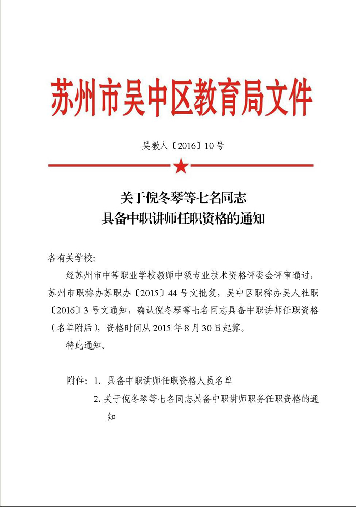 关于倪冬琴等七名同志具备中职讲师任职资格的通知
