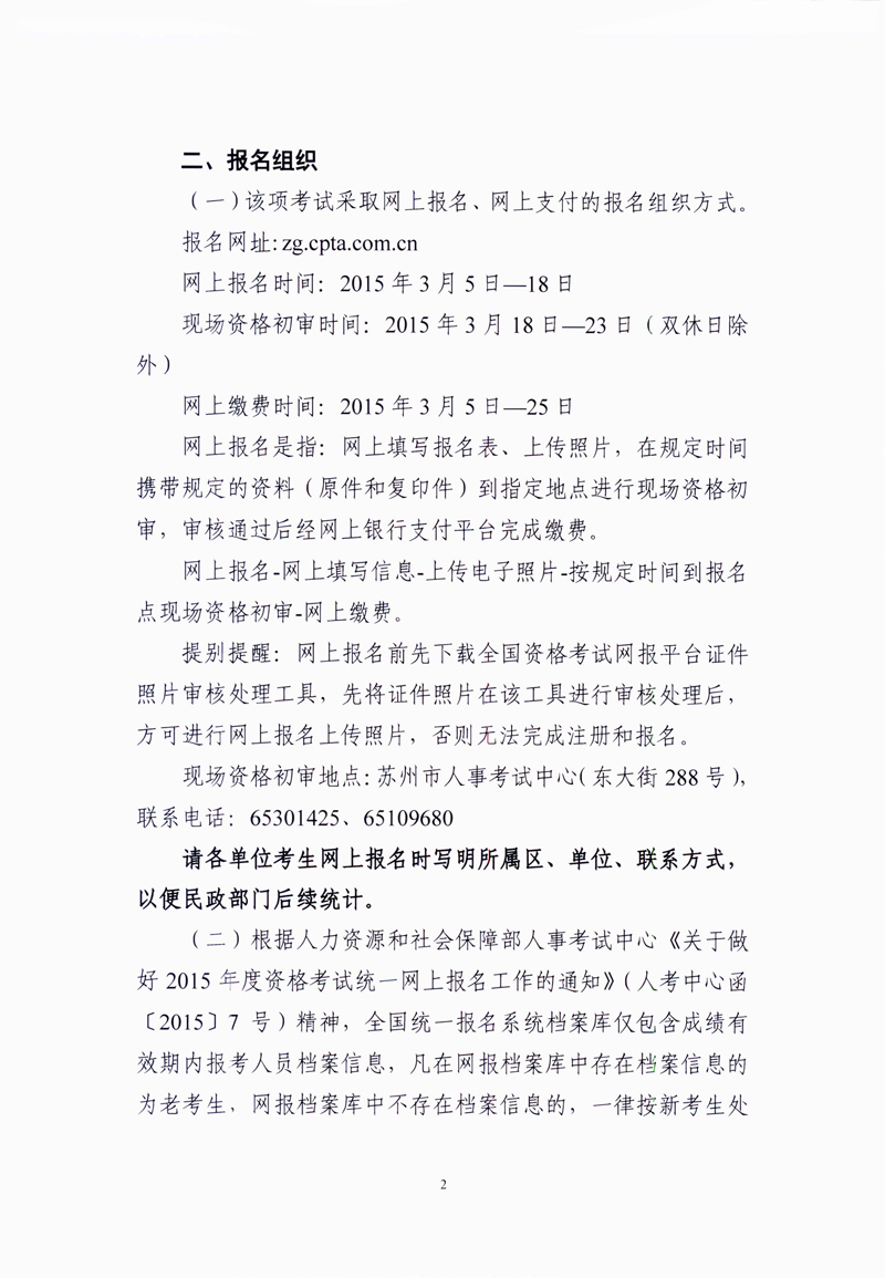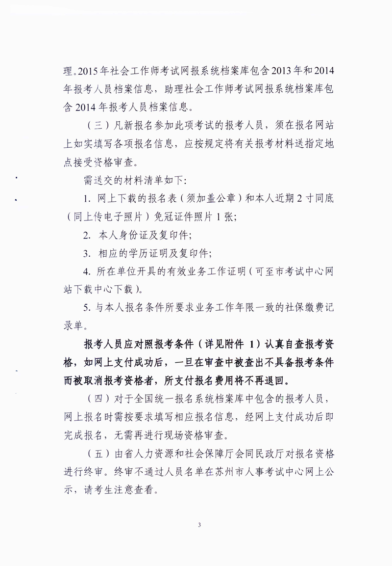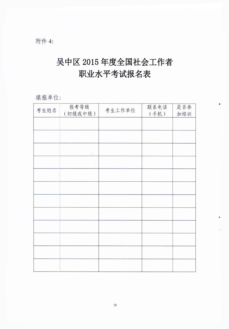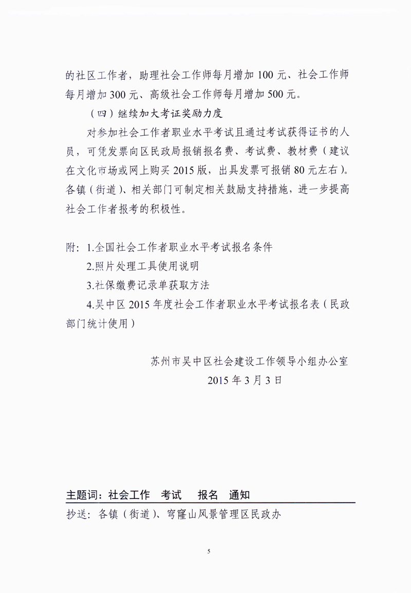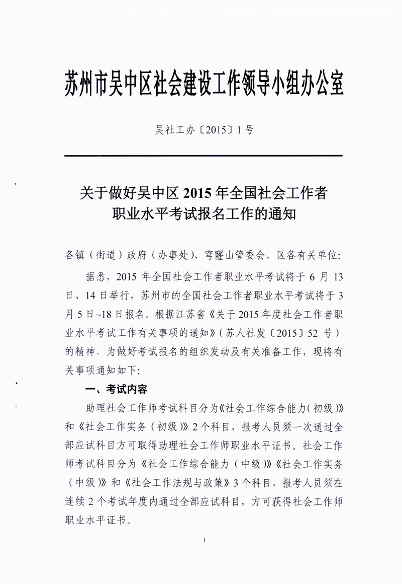 关于做好吴中区2015年全国社会工作者职业水平考试报名工作的通知