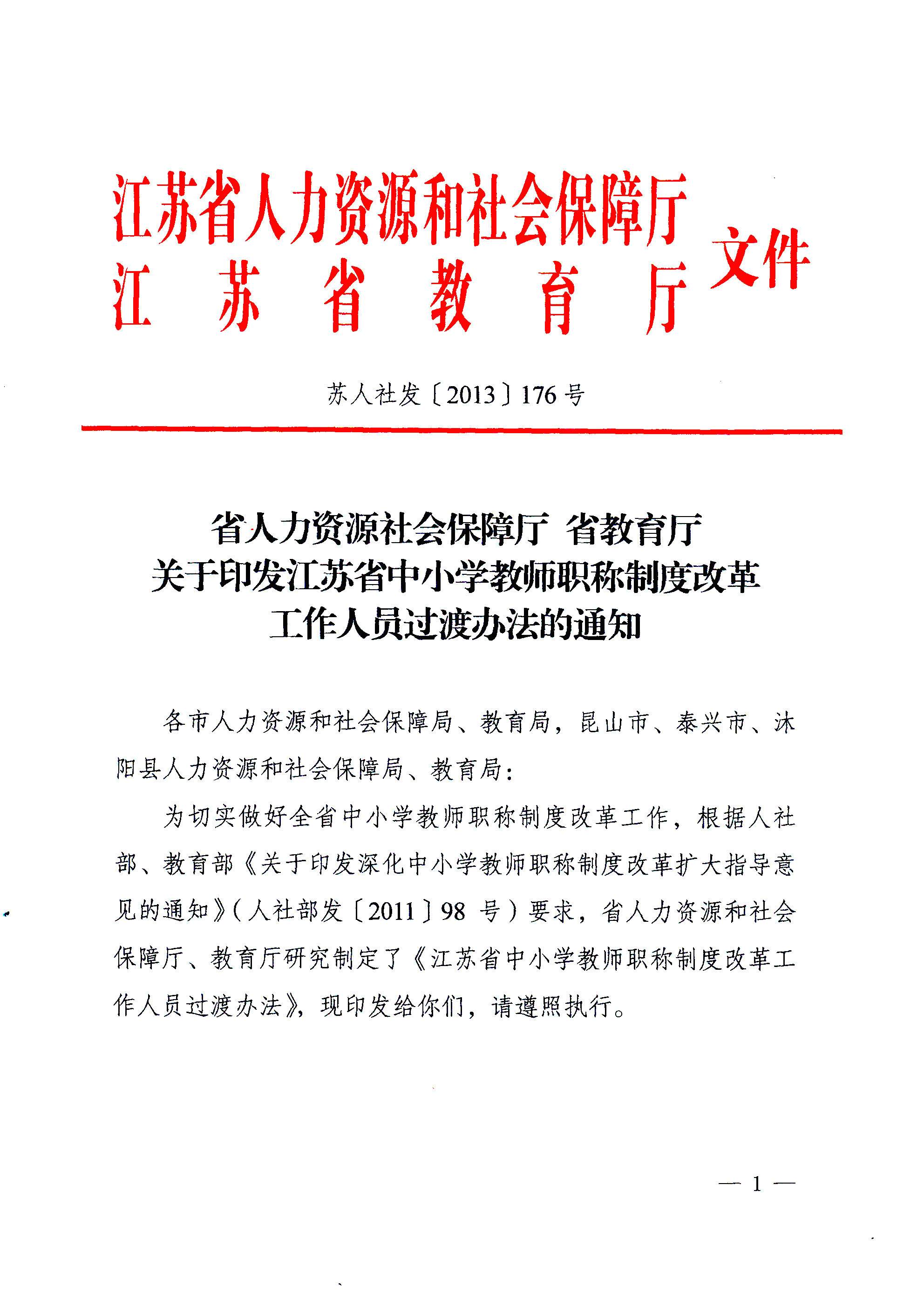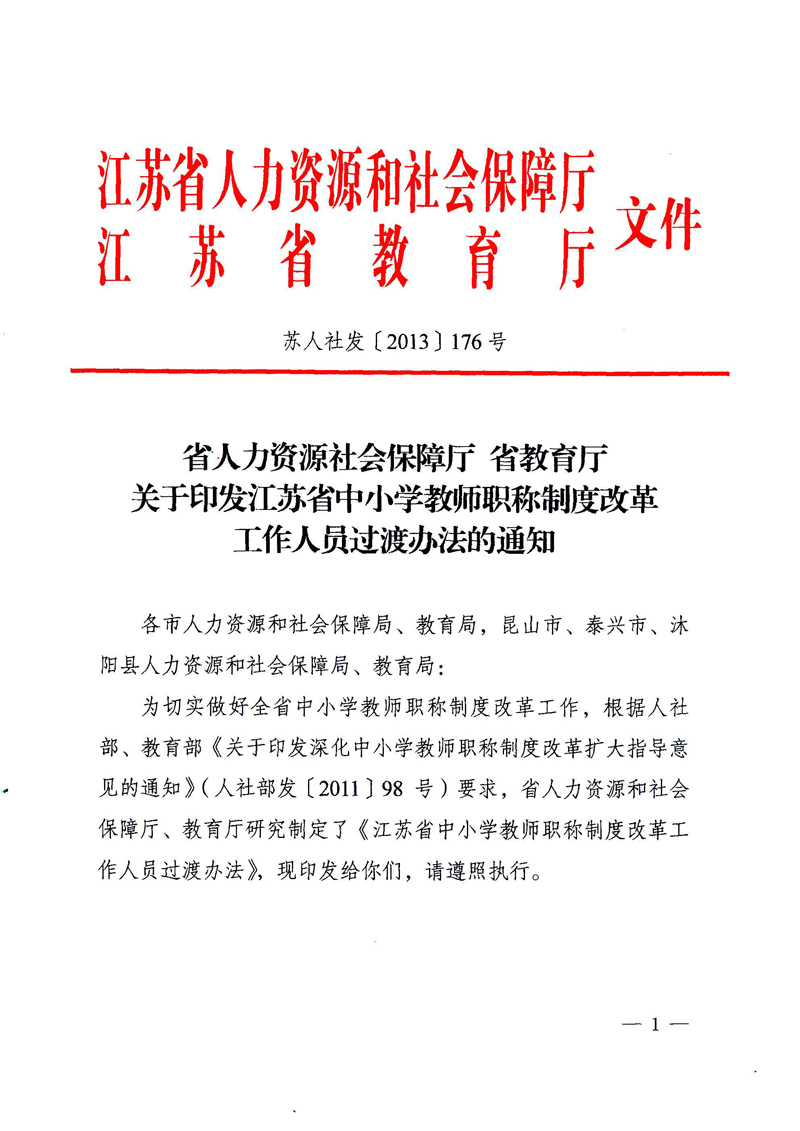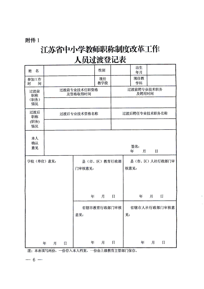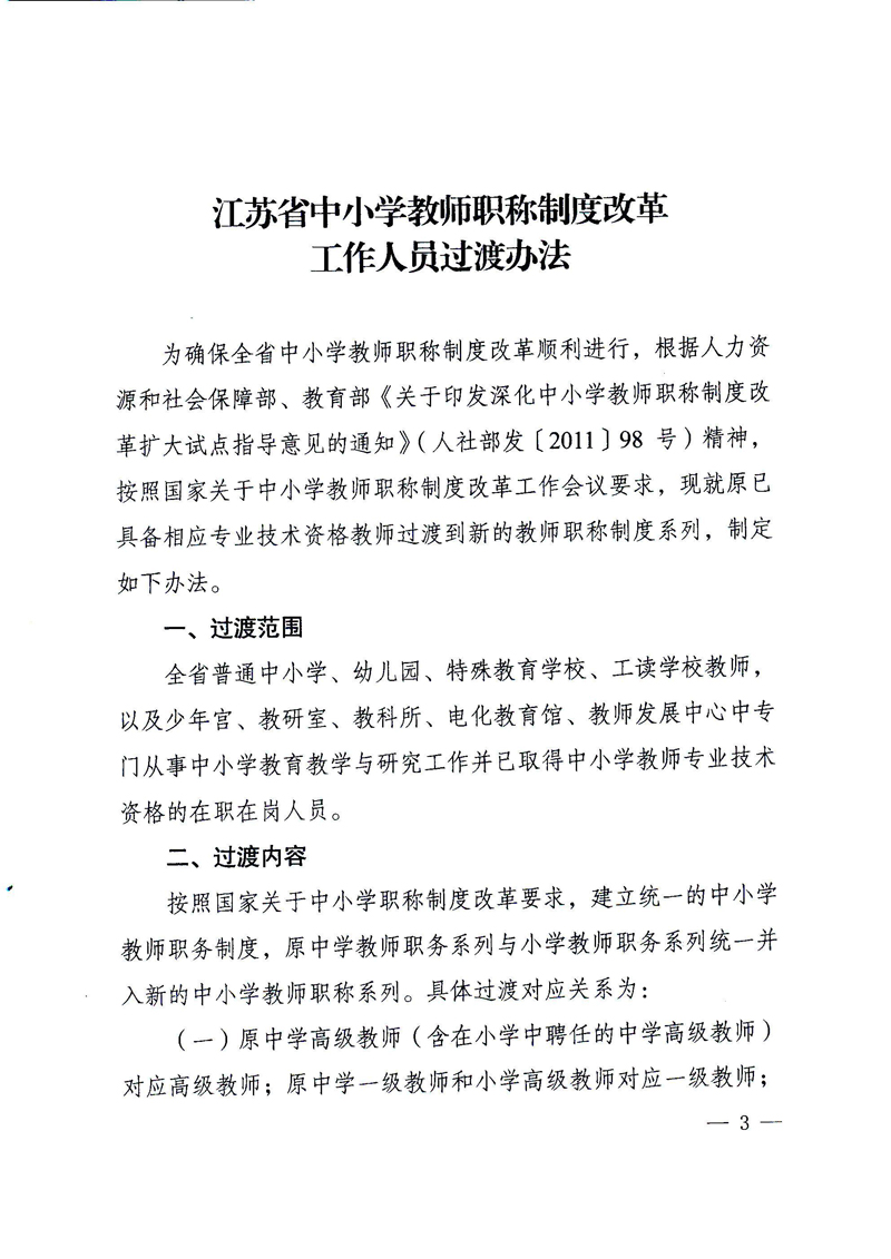 《江苏省中小学教师职称制度改革工作人员过渡办法的通知》