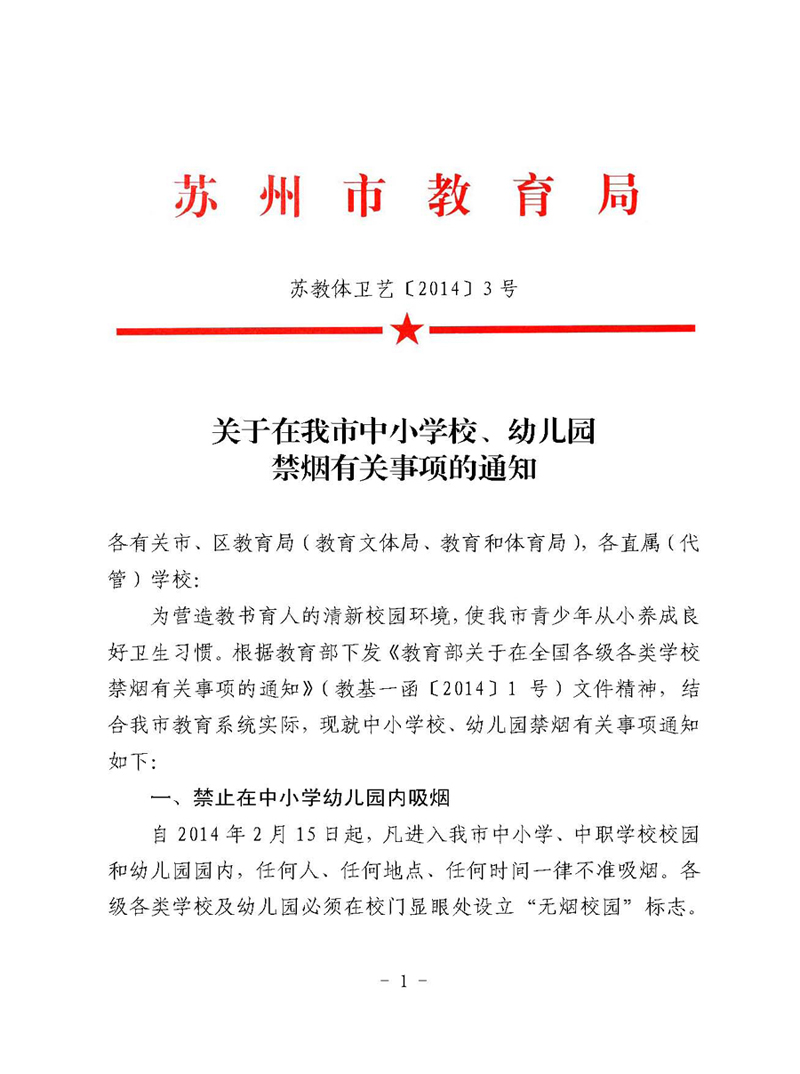 关于在我市中小学校、幼儿园禁烟有关事项的通知