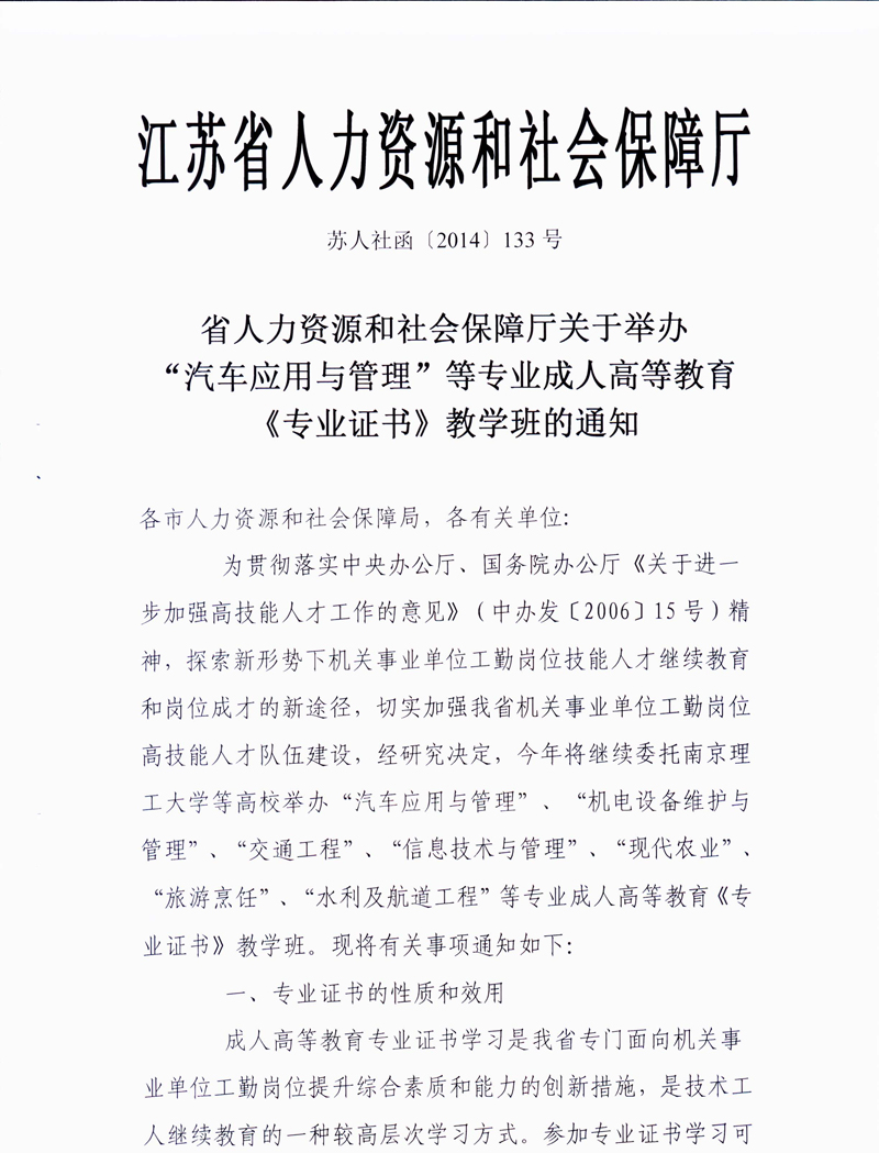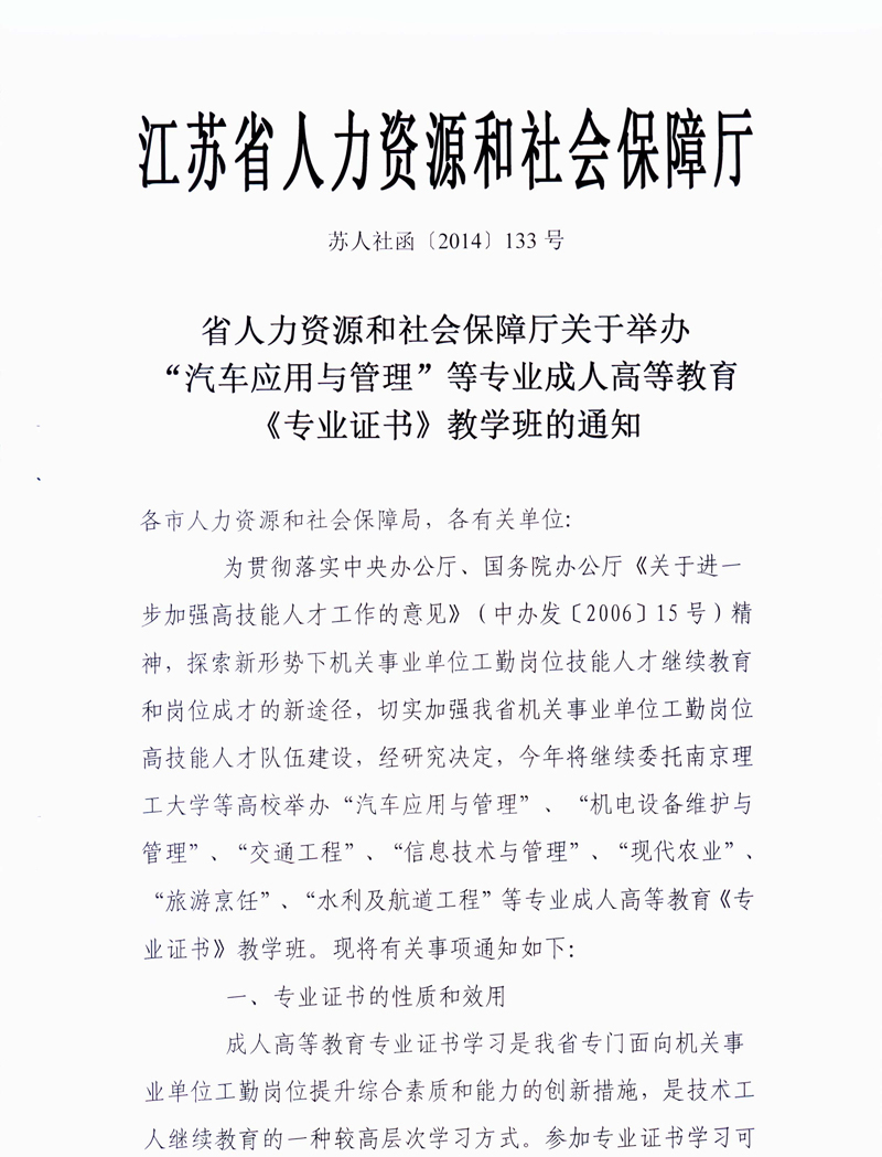 关于转发《省人力资源和社会保障厅关于举办“汽车应用与管理”等专业成人高等教育〈专业证书〉教学班的通知》的通知 来源:本站原创 发布时间:2014-05-27 14:42:05 浏览次数: 次 【字体:小 大】 分享到: 【打印正文】 相关内容
