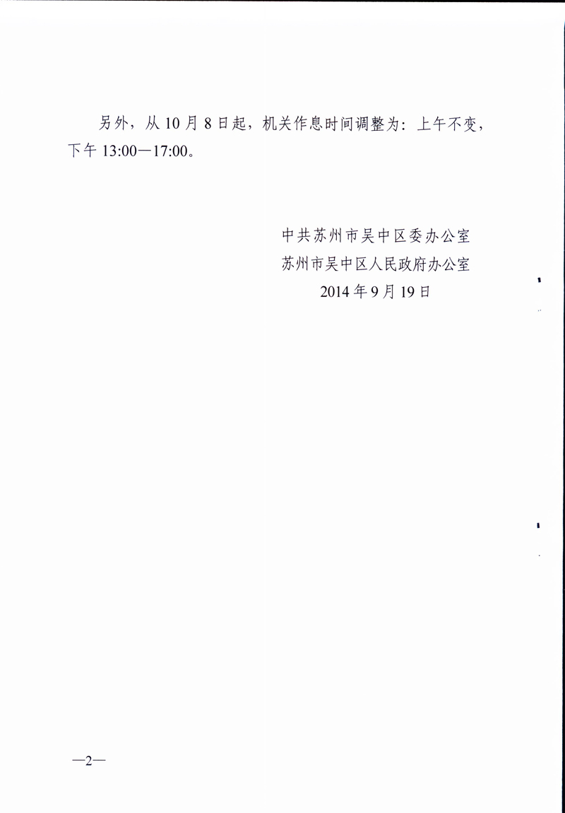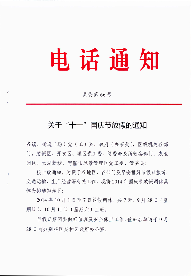关于转发吴中区委办公室《关于“十一”国庆节放假的通知》的通知