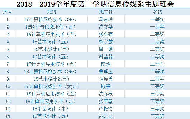 经过激烈的角逐,17计算机网络技术(3+3)班的《感恩父母,孝老敬亲》和18软件与信息服务(五)班的《青春无悔,梦想起航》两堂班会课脱颖而出,获得了系部一等奖,并将代表我系参加学校的主题班会比赛,预祝两个班级获得好成绩。