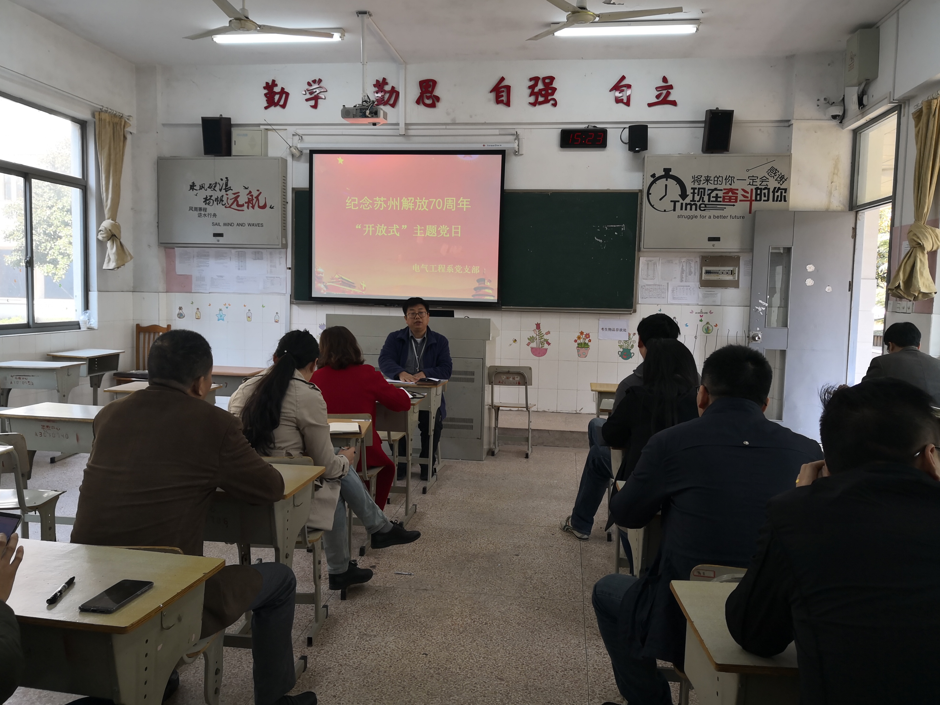 为纪念苏州解放70周年,更加深入了解苏州革命史及苏州翻天覆地的变化,不断激发党员同志们的信仰信念信心的精神力量,电气工程系党支部在A1104开展了以“纪念苏州解放70周年”为主题的“开放式”党日活动,系部21名党员均参加了此次活动。