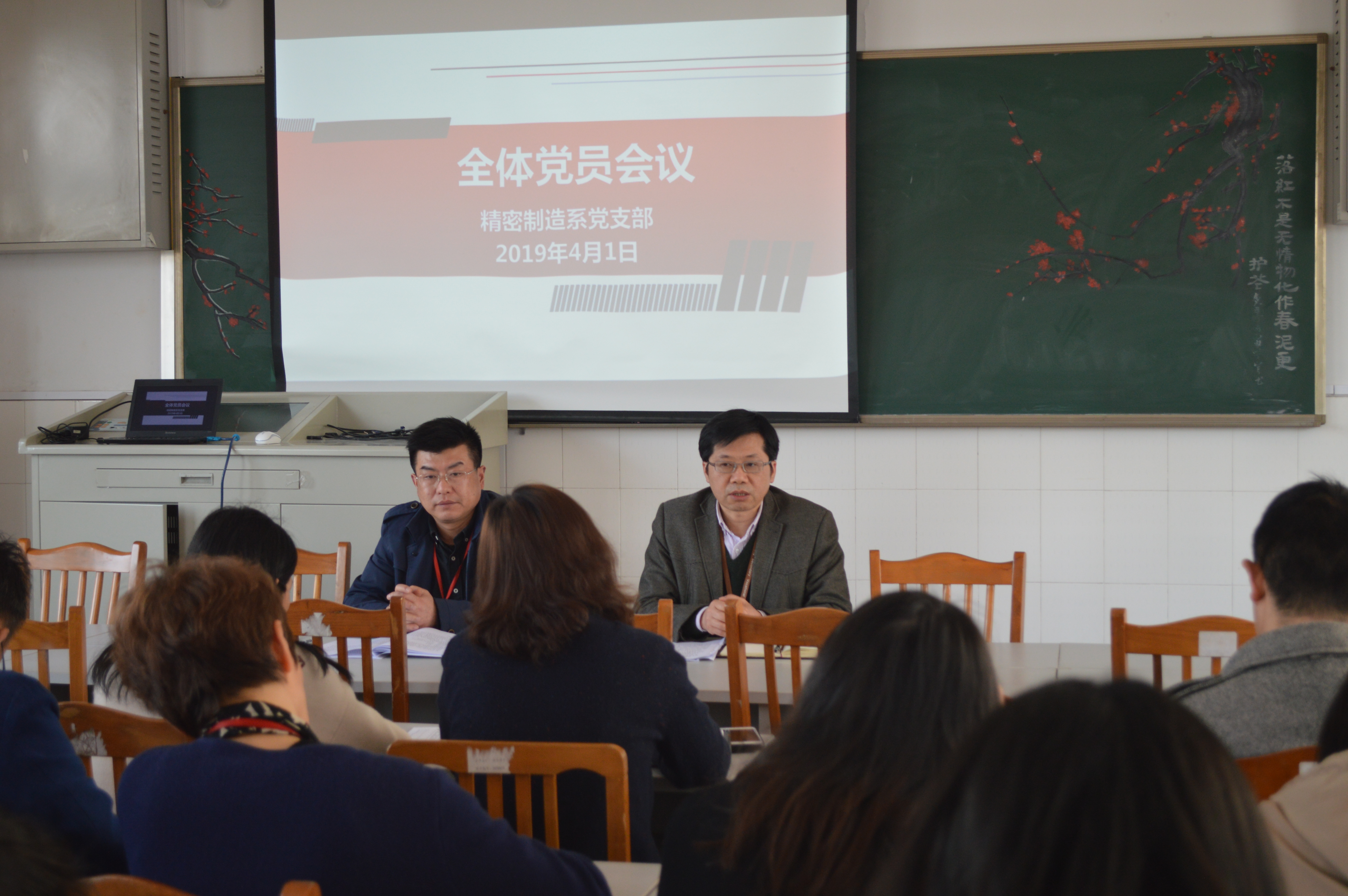 为贯彻落实吴中区委巡查组反馈意见要求,精密制造系党支部于2019年4月1日下午15:30在A3-206党员活动室召开通报区委巡查反馈意见暨学习贯彻习总书记重要讲话精神学习会,会议由精密制造系党支部书记张思明同志主持,校党委委员夏克寒同志到会作重要讲话。