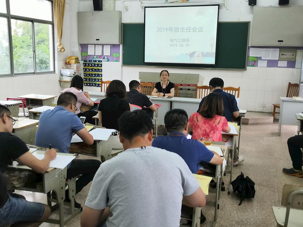 金秋九月,学生归来——电气工程系欢迎新老新生开学! 来源:电气工程系 发布时间:2019-08-29 15:52:00 浏览次数: 次 【字体:小 大】 2019年8月29日,电气工程系全体班主任共聚一堂,学习新思想,坚定信念,为全体学生提供优质服务! 在会上,蒋时明副主任对全体新老班主任给与了热烈的欢迎和鼓励、详细的介绍了德育条线会议的精神,传达了上级领导本学期的计划和要求。在新的一学期,全体电气工程系班主任将在校、系部领导的带领下,竭诚为电气工程系专业学生提供优质服务! 分享到: 【打印正文】
