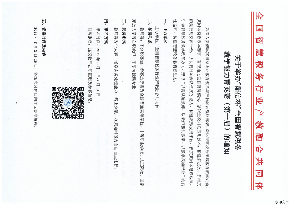 2025年“衡信杯”全国智慧税务教学能力菁英赛(第一届)竞赛通知