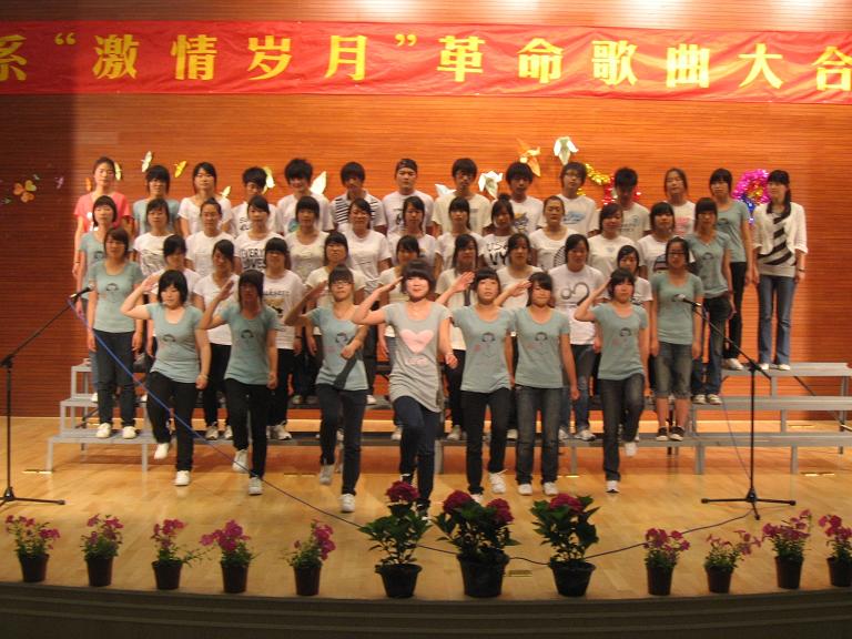 5月21日15:30,我系在图书馆底楼报告厅举办了“激情岁月革命歌曲大合唱”。11个班级参加了大合唱比赛。
