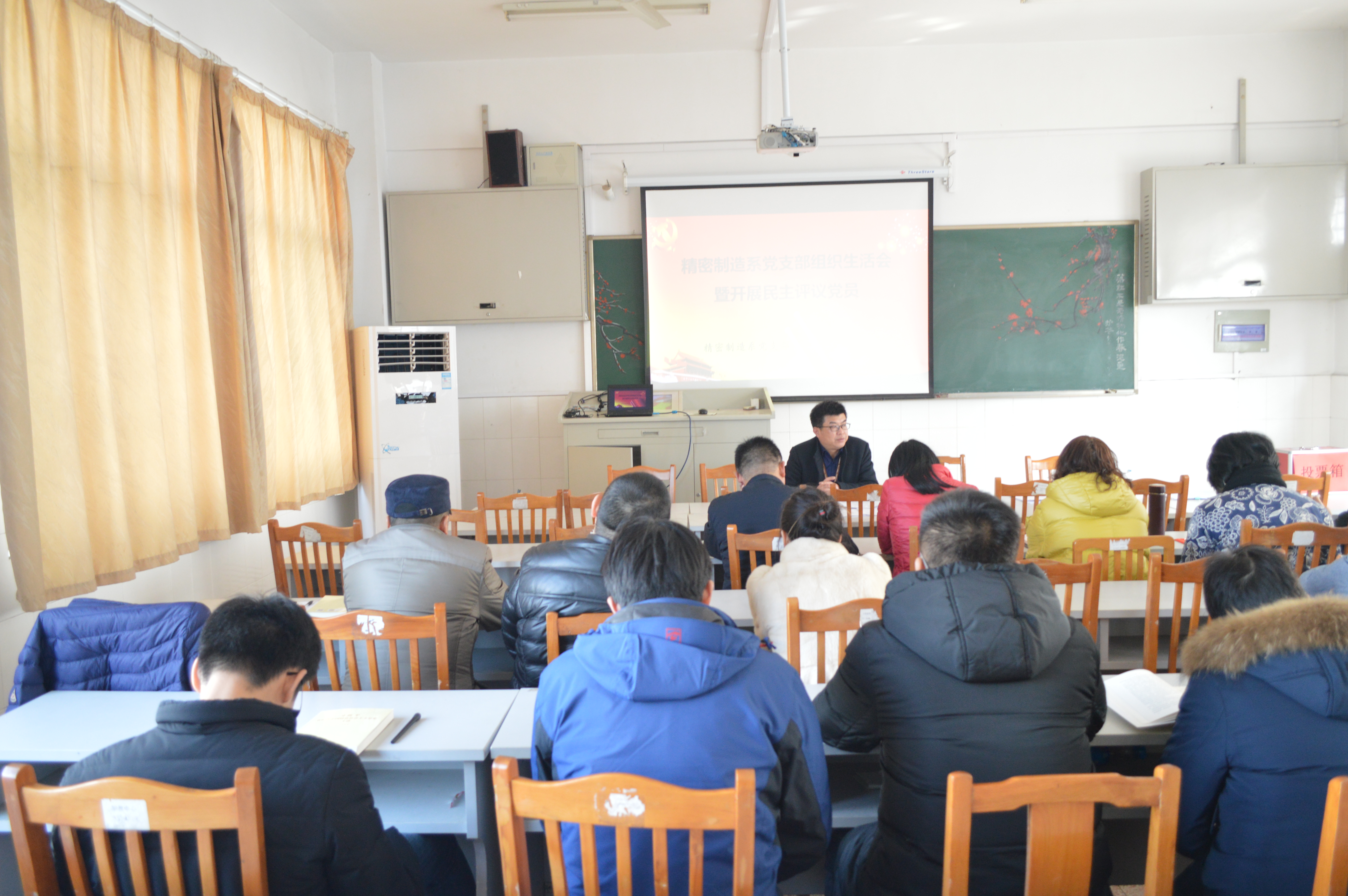 为认真学习贯彻党的十九大精神,严格执行《关于新形势下党内政治生活若干准则》,增强党内政治生活的政治性、时代性、原则性、战斗性,根据上级党委通知精神,精密制造系党支部于2019年1月17日下午13:30在A3-206党员活动室开展2018年度党支部组织生活会暨民主评议党员活动。此次会议由党支部书记张思明同志主持,全体党员参加本次会议,校党委委员夏克寒同志到会指导民主评议工作。