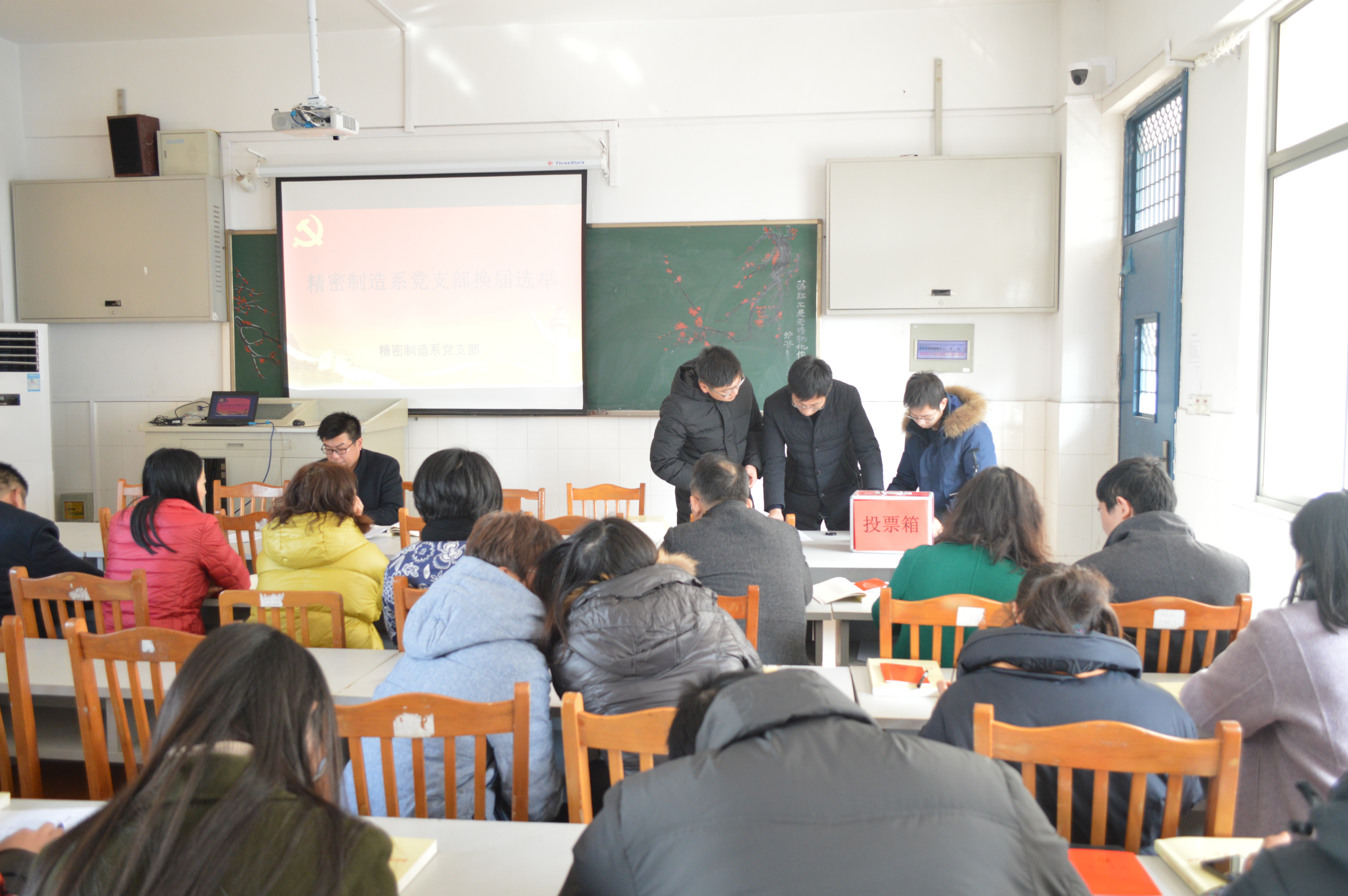 2019年1月17日下午15:00,精密制造系党支部在A3-206党员活动室召开党支部委员换届选举会议,精密制造系党支部参会党员超过应到会正式党员五分之四,会议由张思明同志主持。