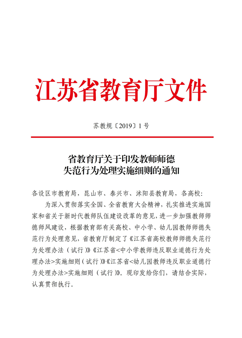 省教育厅关于印发教师师德失范行为处理实施细则的通知