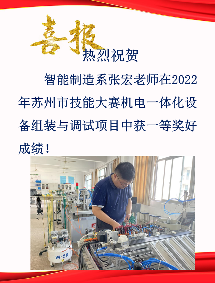 喜报——智能制造系张宏老师在2022年苏州市技能大赛机电一体化设备组装与调试项目中获一等奖好成绩! 来源:智能制造系 发布时间:2021-10-28 16:30:57 浏览次数: 次 【字体:小 大】 终审:智能制造系 分享到: 【打印正文】