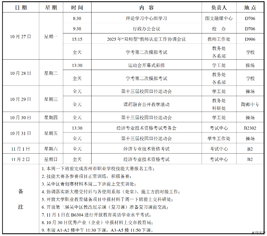 智能制造系2025-2026学年第一学期第九周工作安排