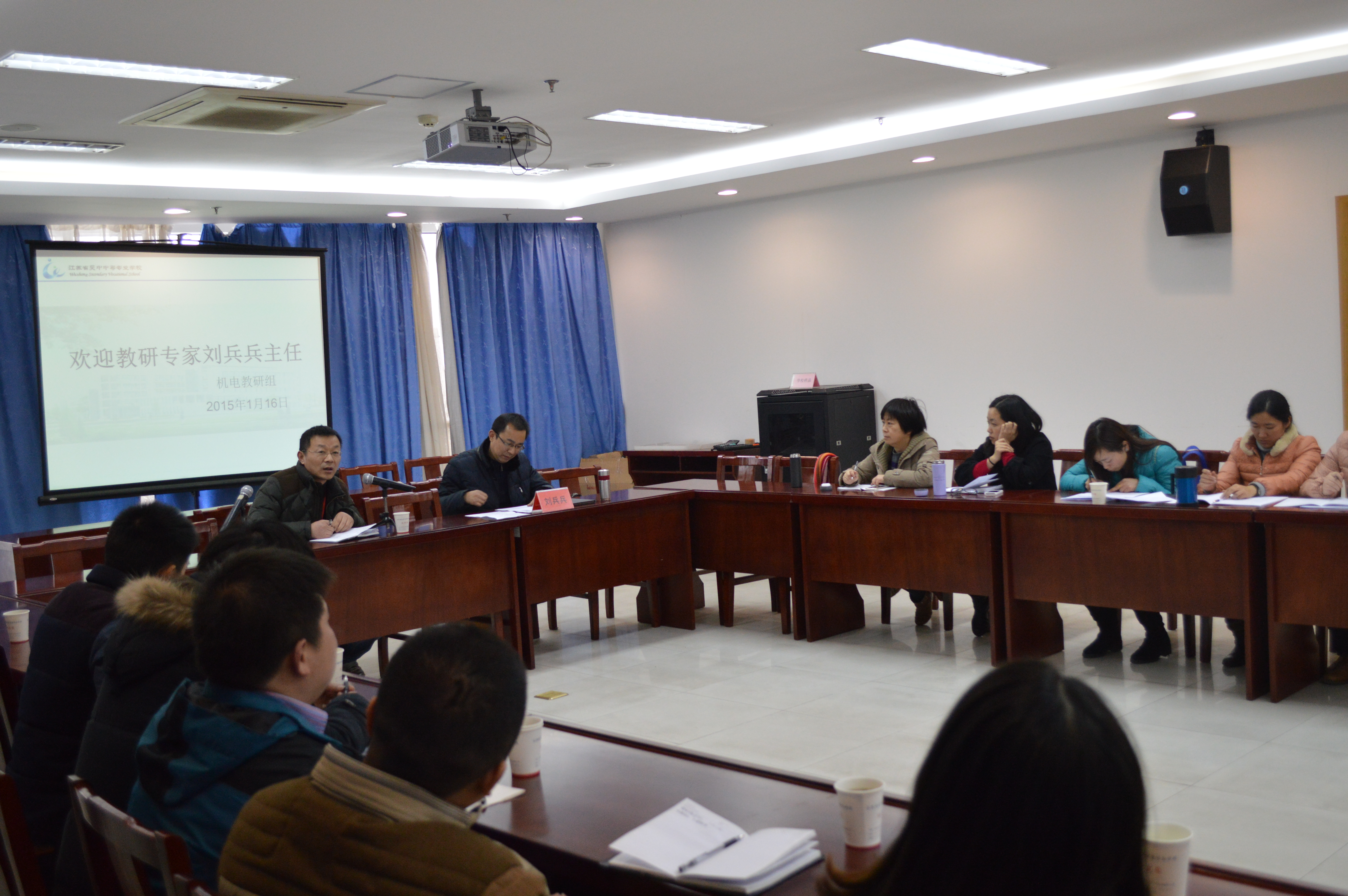 2015年1月16日,机电一体化技术专业教研组全体教师在D509会议室开展了教研活动。本次活动邀请到了南通市教研室刘兵兵主任。