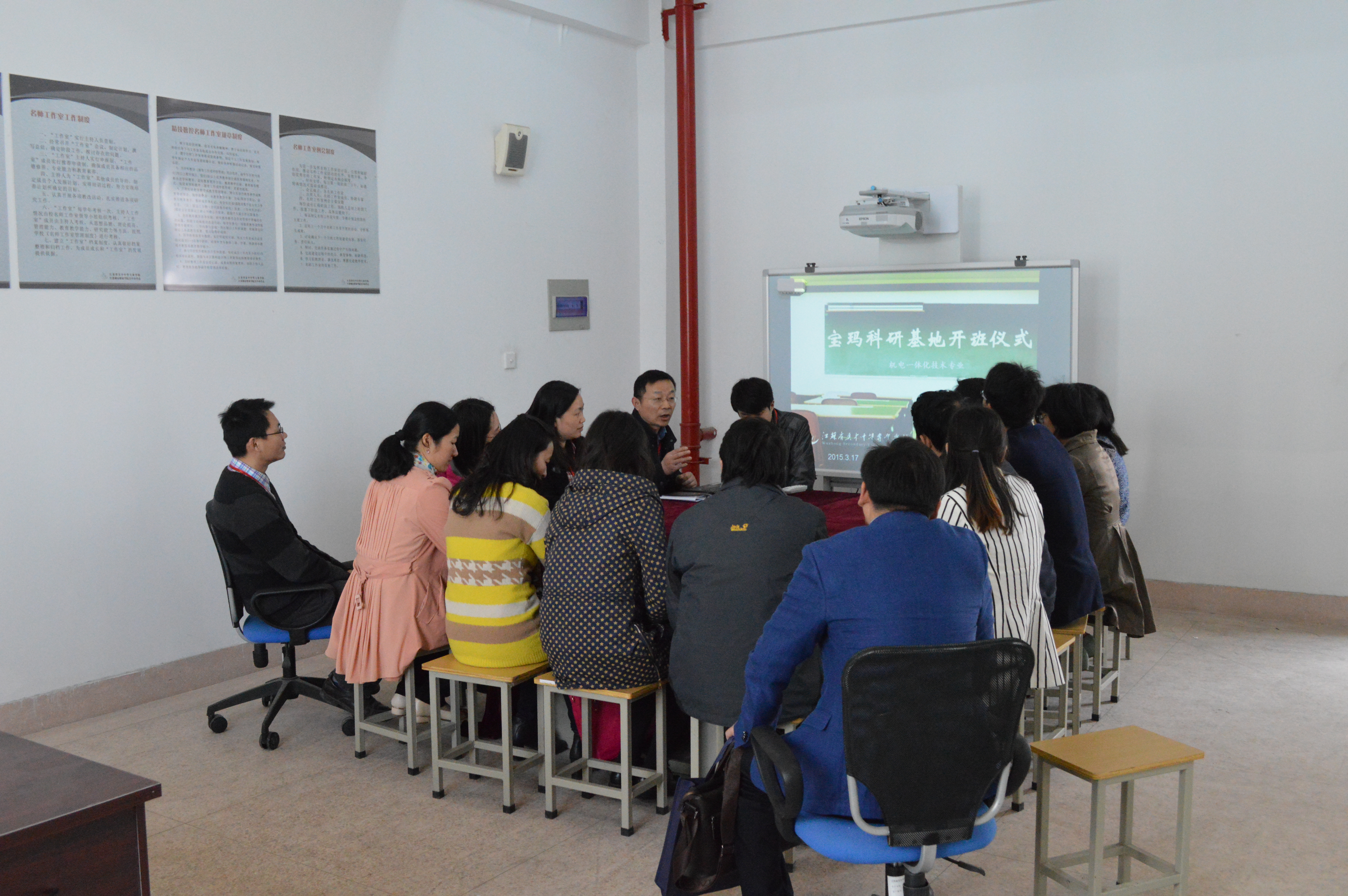 机电一体化技术专业举行校外科研基地开班仪式 来源:本站原创 发布时间:2015-04-22 16:05:49 浏览次数: 次 【字体:小 大】 为了提升专业教师专业素养,针对专业师资队伍现状及建设要求,2015年3月20日,机电一体化技术专业在苏州市宝玛数控设备有限公司举办了校外科研基地开班仪式。专业组全体成员组班参加了此次活动。 仪式上,宝玛数控设备有限公司副总经理赵琦先生为专业教师做了一个关于专业教师提升的专题讲座,要求专业教师能在宝玛校外科研基地中,加强与导师密切合作,能根据宝玛数控设备有限公司的科研项目,认真学习、研究,与导师顺利完成具体课题,圆满完成学校、企业所要求的各项任务。 分享到: 【打印正文】