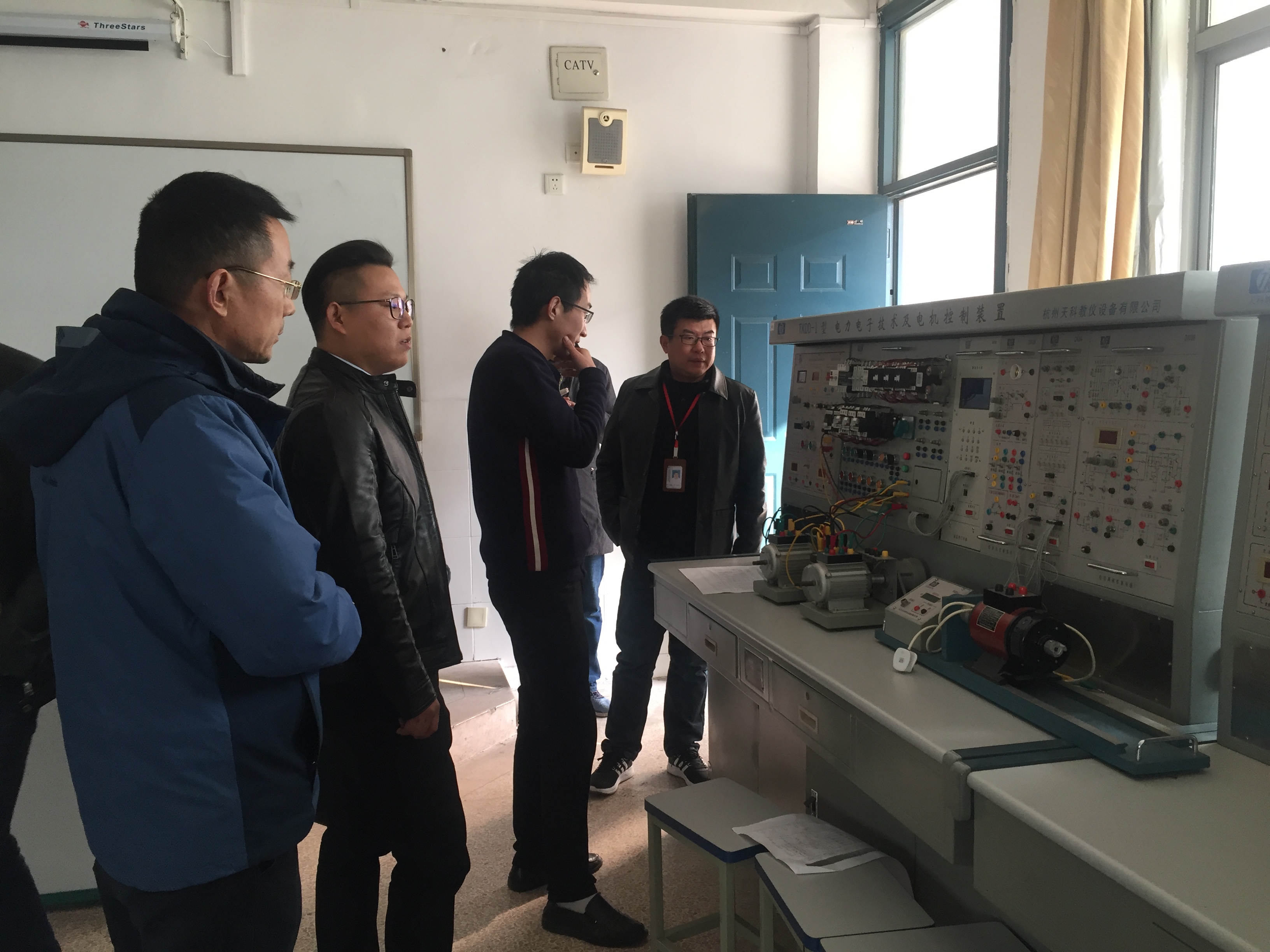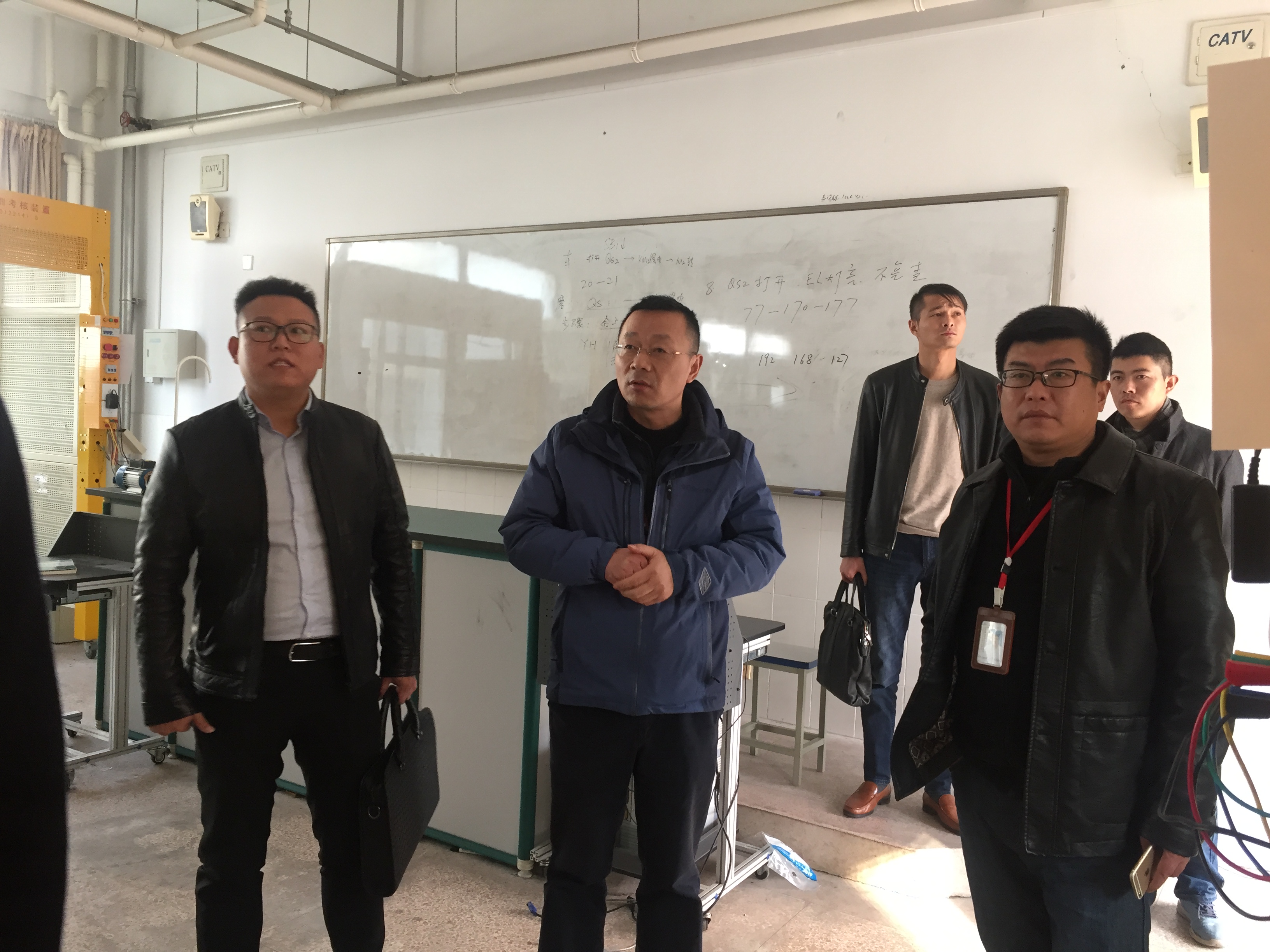 2017年12月25日下午,苏州中恒普瑞能源互联网科技有限公司的杨经理和朱经理,在我系张思明主任和沈建国副主任的带领下参观了我系机电实训中心,了解了各实训项目的设备和学生的学习情况。