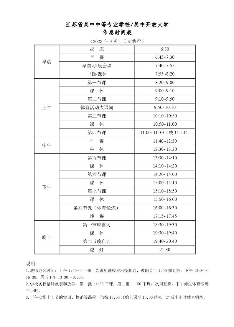 2023~2024学年度第一学期作息时间表(2023年9月1日起执行) 来源:教务处 发布时间:2023-08-28 10:12:06 浏览次数: 次 【字体:小 大】 终审:教务处 分享到: 【打印正文】