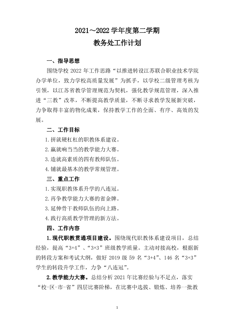 2021~2022学年度第二学期教务处工作计划
