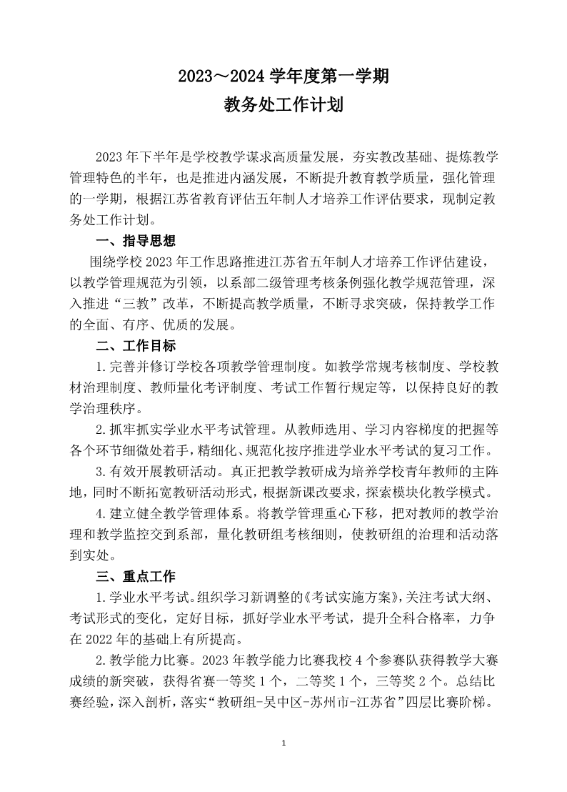 2023~2024学年度第一学期教务处工作计划