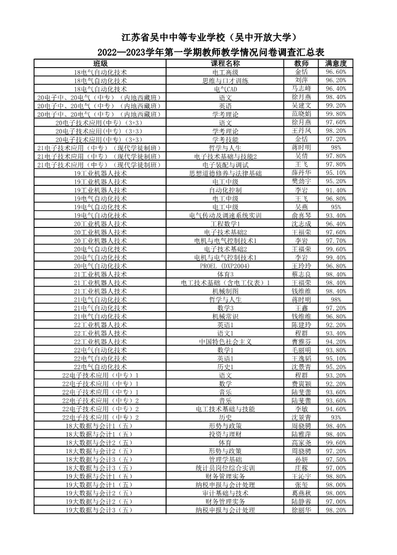 2022-2023学年第一学期满意度调查汇总