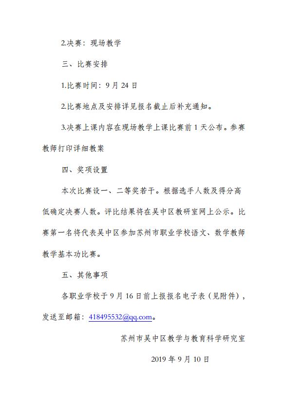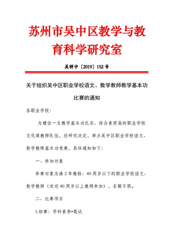 关于组织吴中区职业学校语文、数学教师教学基本功比赛的通知 来源:教务处 发布时间:2019-09-12 10:49:22 浏览次数: 次 【字体:小 大】 关于组织吴中区职业学校语文、数学教师教学基本功比赛的通知.doc 终审:教务处 分享到: 【打印正文】