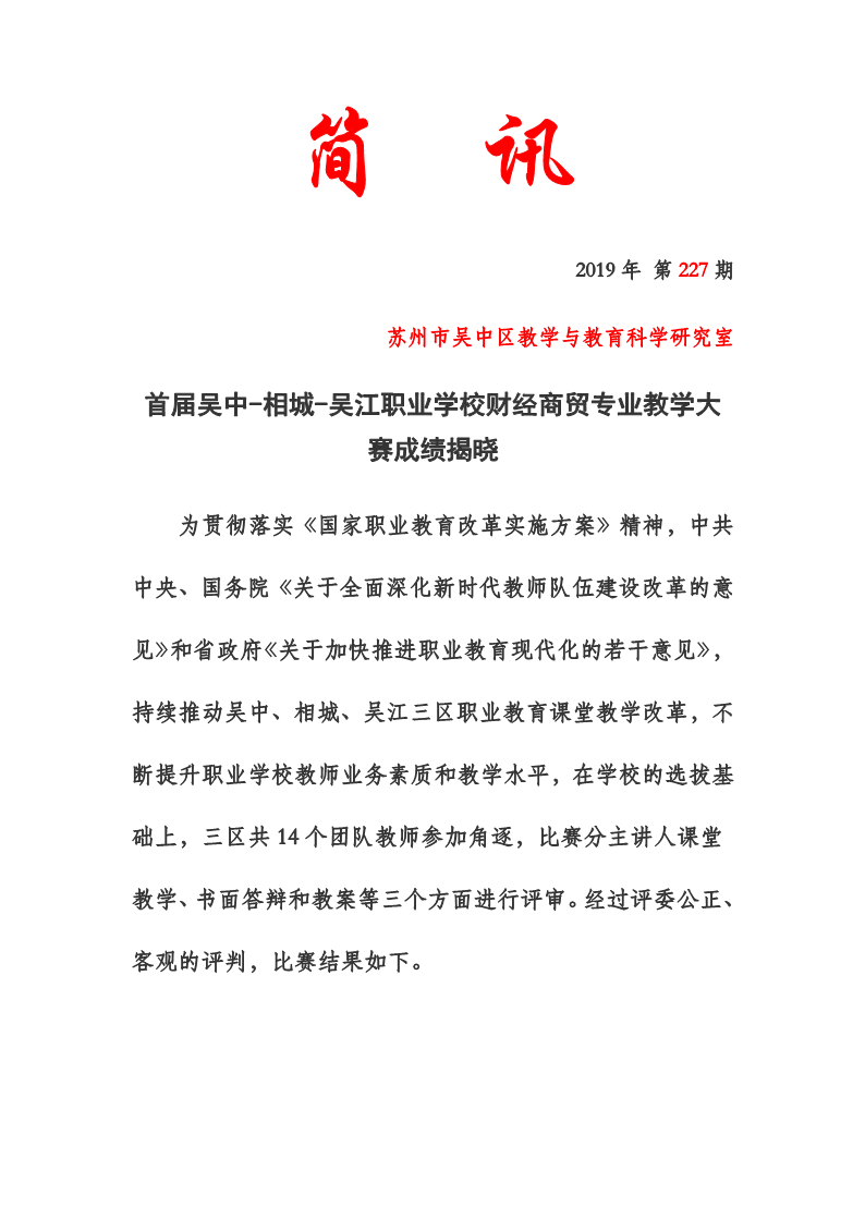 首届吴中-相城-吴江职业学校财经商贸专业教学大赛成绩揭晓