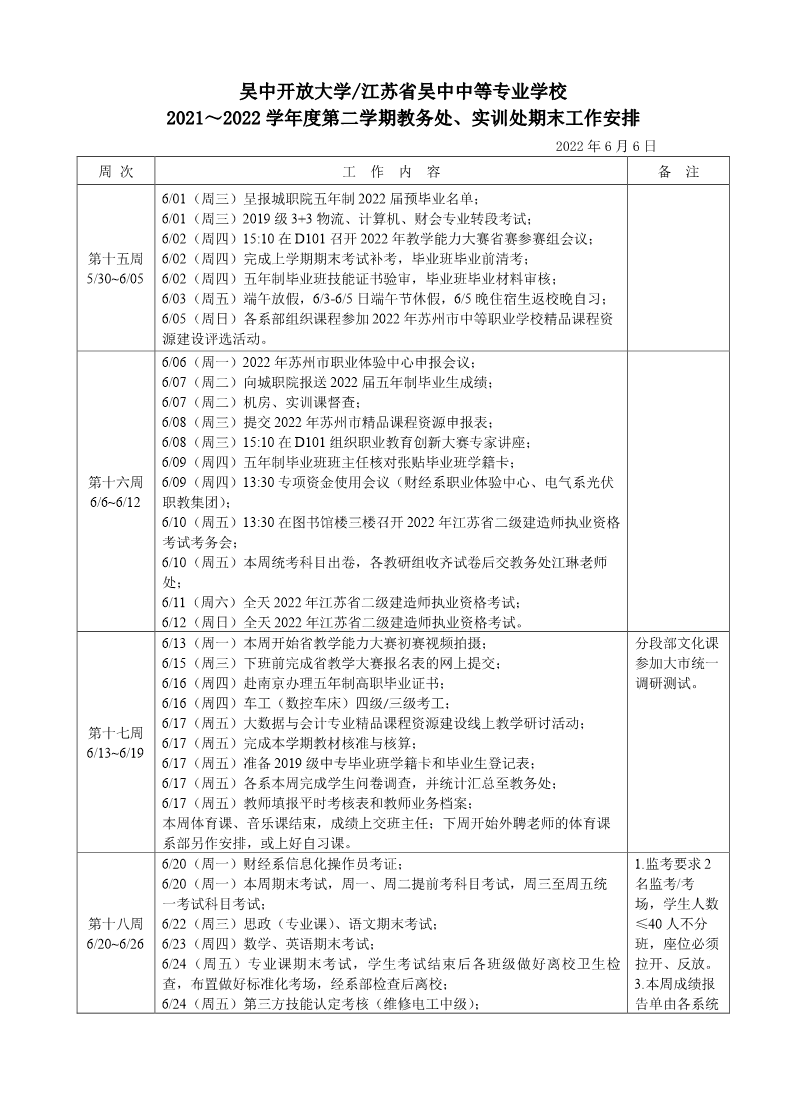 2021~2022学年第二学期教务处期末工作安排