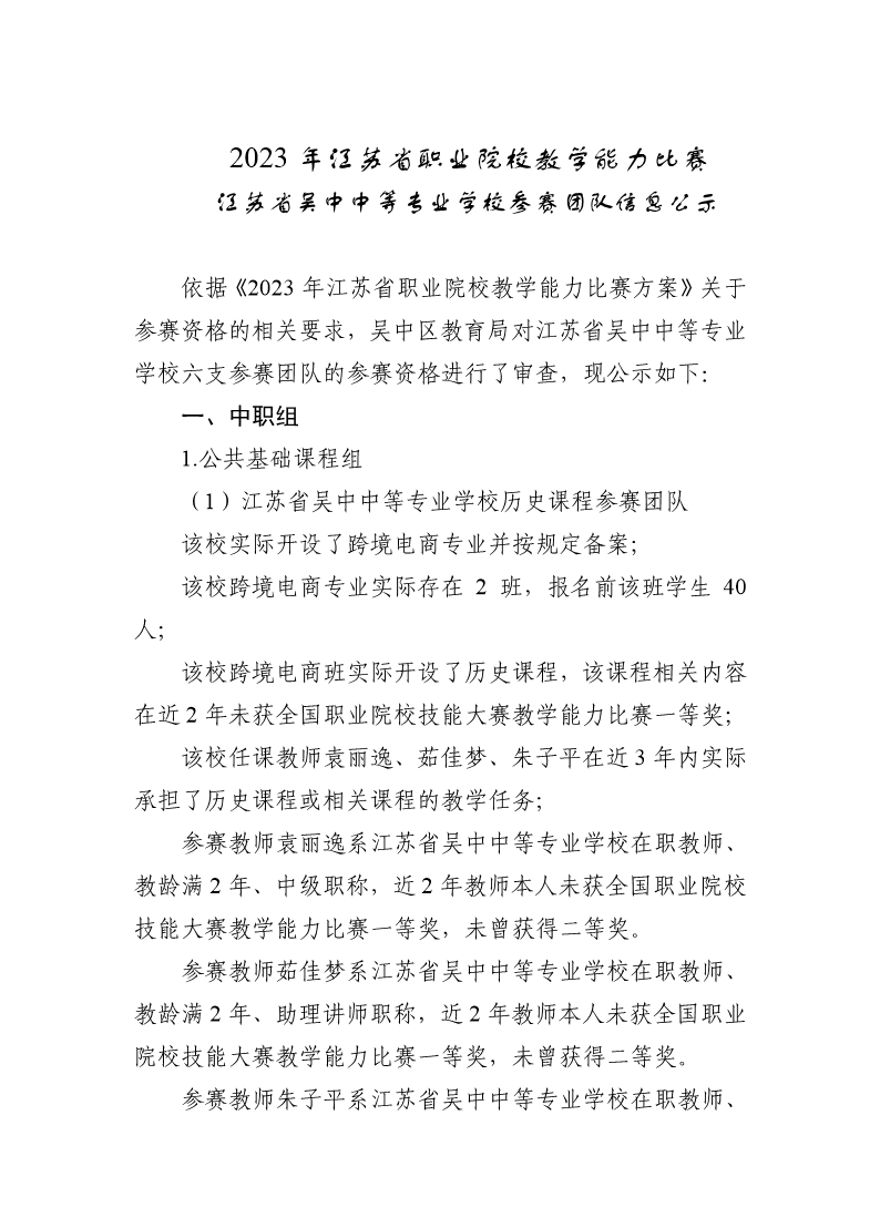 2023年江苏省职业院校教学能力比赛参赛团队公示