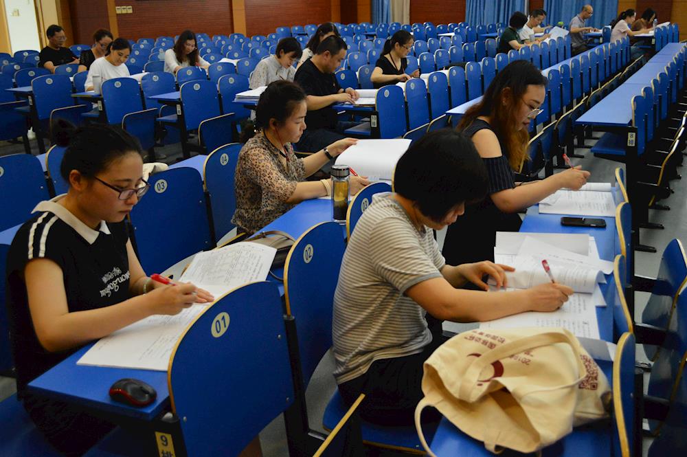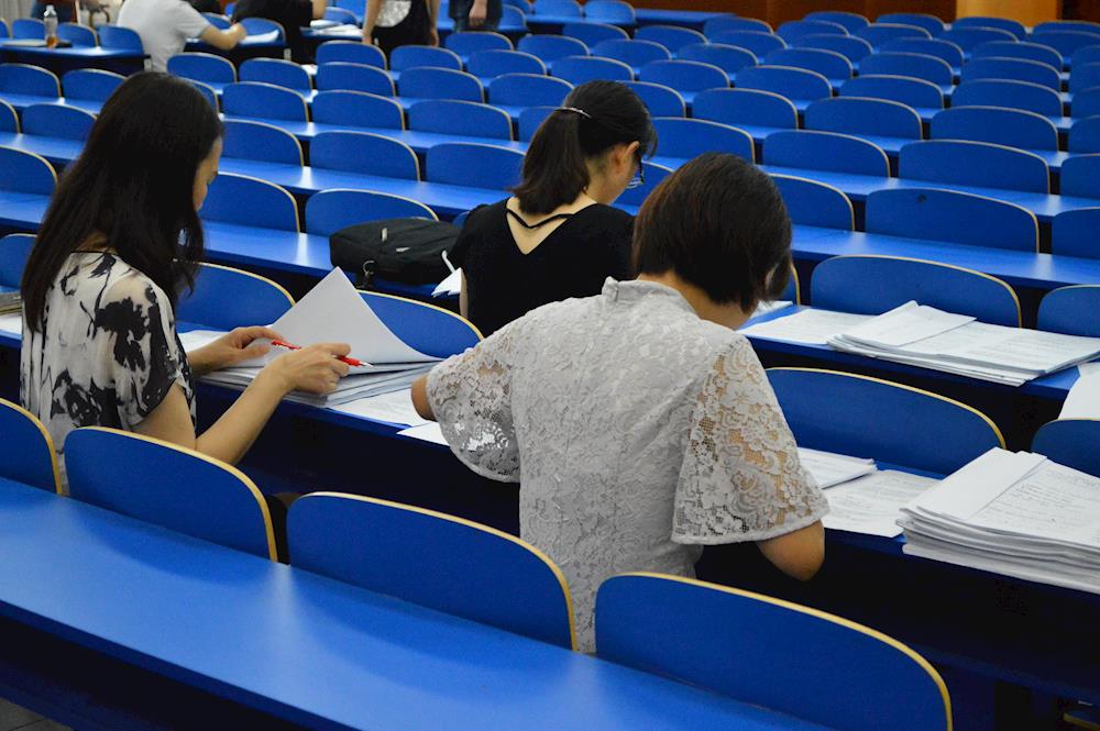 2020年7月9日,早上八点半,各教研组阅卷教师准时到达学校300人报告厅,按教务处提前布置好的阅卷任务,有条不紊地开展统批工作。