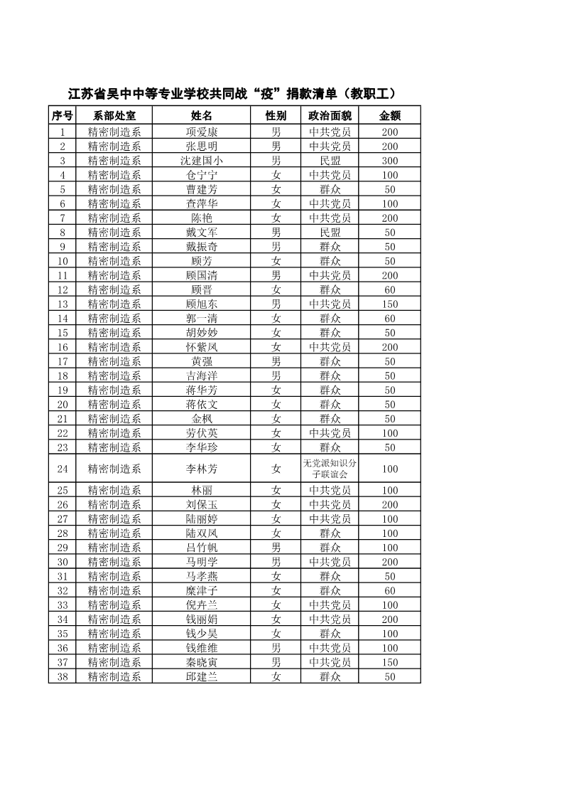 江苏省吴中中等专业学校共同战“疫”捐款清单
