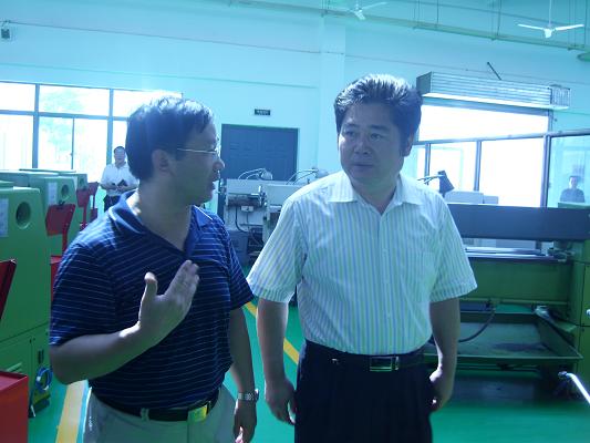 省电大、省城职院党委彭坤明书记莅校视察 来源:本站原创 发布时间:2009-08-22 13:26:52 浏览次数: 次 【字体:小 大】 8月18日下午,江苏广播电视大学、江苏城市职业学院党委书记彭坤明同志携科研处金丽霞处长莅临我校指导工作,学校全体校级领导热情迎接。彭书记与金处长在黄校长的陪同下参观了学校机电实训中心,并与校级领导们进行了亲切会谈。会谈中,彭书记对我校办学所取得的成绩给予了充分肯定,并对学校今后的建设与发展提出了更高的要求和殷切的希望。 彭书记与我校校级领导亲切握手 彭书记参观我校机电实训中心 分享到: 【打印正文】 相关内容