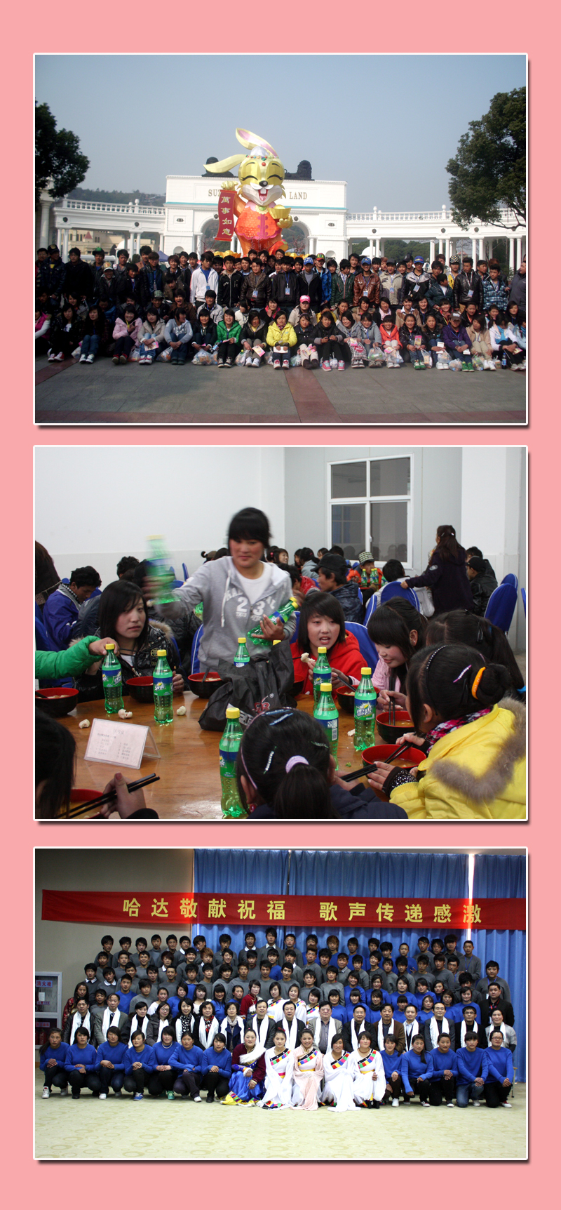 阳春时节,藏历铁兔新年带着吉祥飘然而来。为了让同学们身在异地他乡也能感受到新年的快乐,3月3日,在各级领导的关心支持和学校的周密安排下,内地西藏中职班的全体同学来到苏州乐园。他们怀着新奇的心情游玩了苏州乐园里的大部分游乐项目,惊险而刺激的过山车让所有的同学既害怕又兴奋,乐园里不同的建筑让同学们感受到了他乡的风情。藏历十二月二十九晚,学校领导、老师和同学们一起吃团圆饭“古突”。牛肉、辣椒、米粒、硬币等原料做成的“古突”的馅代表着不同的含义,不管吃到什么馅,同学们都用笑声迎接新年的到来。3月4日下午,区政协主席张阿梅等领导来校看望同学们,并送上了慰问金。同学们用洁白的哈达向领导敬献祝福,用优美的舞蹈和甜美的歌声传递感激。3月5日是藏历的大年初一,同学们把宿舍装扮一新,“吉祥木斗”装满了青棵,糟极和各种糖果小吃,青棵上插着青棵穗、麦穗花,和一块绘有太阳、月亮、星星等图案的彩牌。一大早,老师和同学们互相拜年,处处可以听到“扎西德勒”,同学们拍照留念,浓浓的喜庆让每个人脸上都展露着灿烂的笑容。