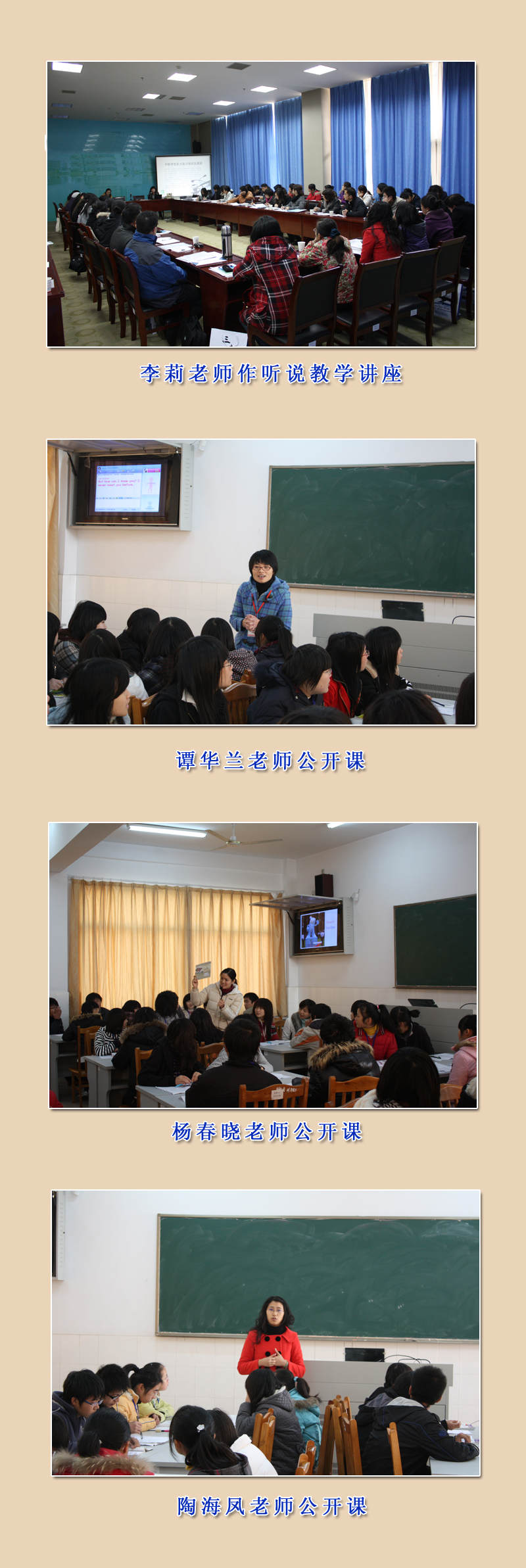 12月3日,苏州市职教英语第三次教研活动在我校举行。来自苏州大市各职业学校的70多名英语教师参加了此次活动。我校杨春晓、谭华兰、陶海凤三位老师分别开设了听说教学研讨课。
