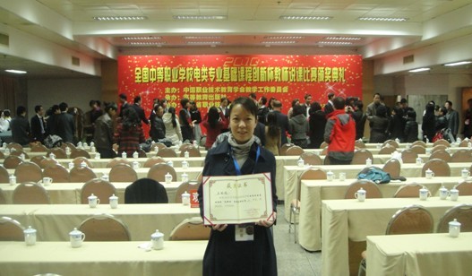 12月15日,中国职业技术教育学会教学工作委员在广州举办了2010年全国中等职业学校电类专业基础课程“创新杯”教师说课比赛。比赛异常激烈,共有来自全国各地的一百多名选手参加比赛,我校王玲玲老师代表江苏省参加了此次比赛。经过激烈的角逐,王玲玲老师的《放大电路的认识与应用》一课获得了全国二等奖的优异成绩。